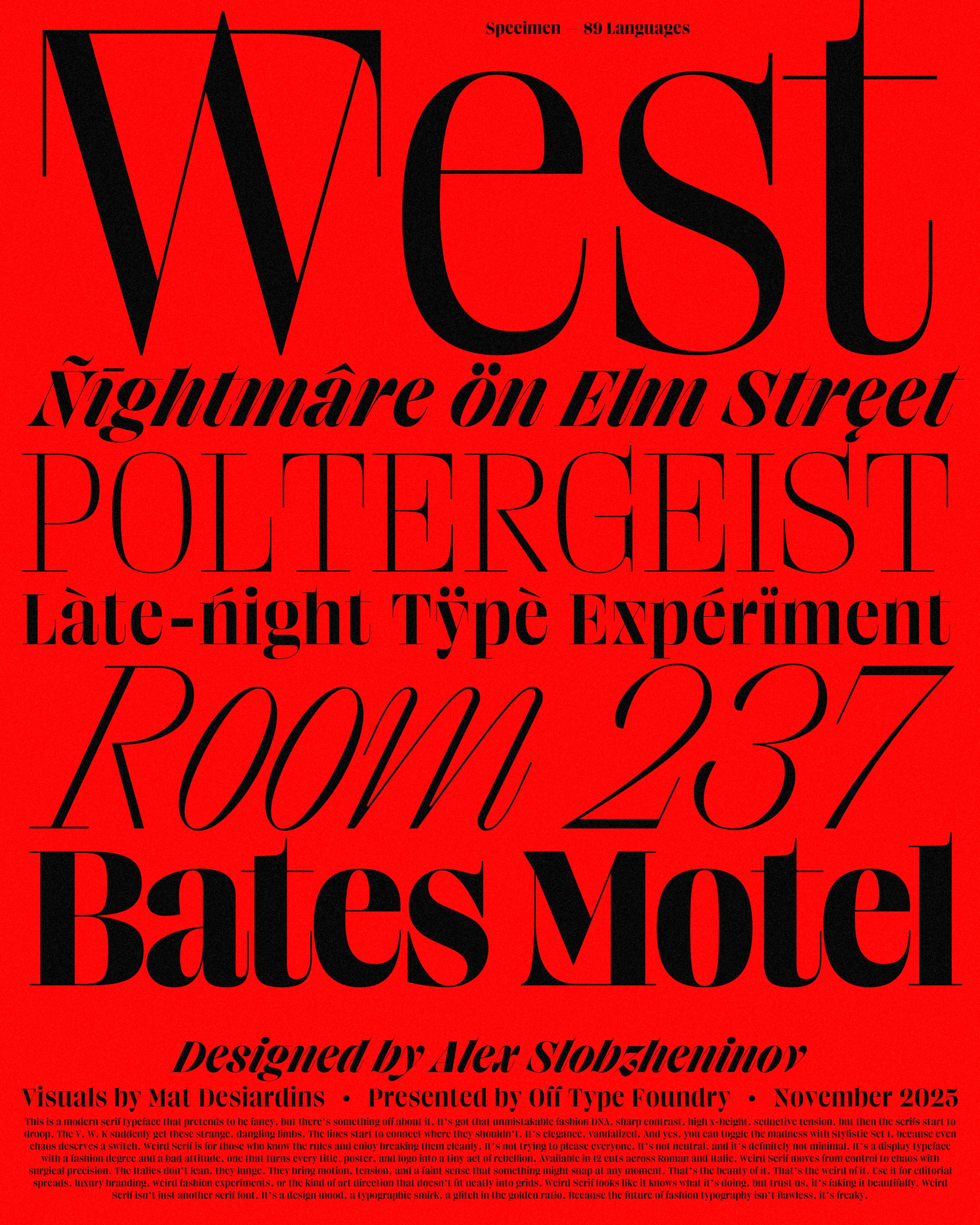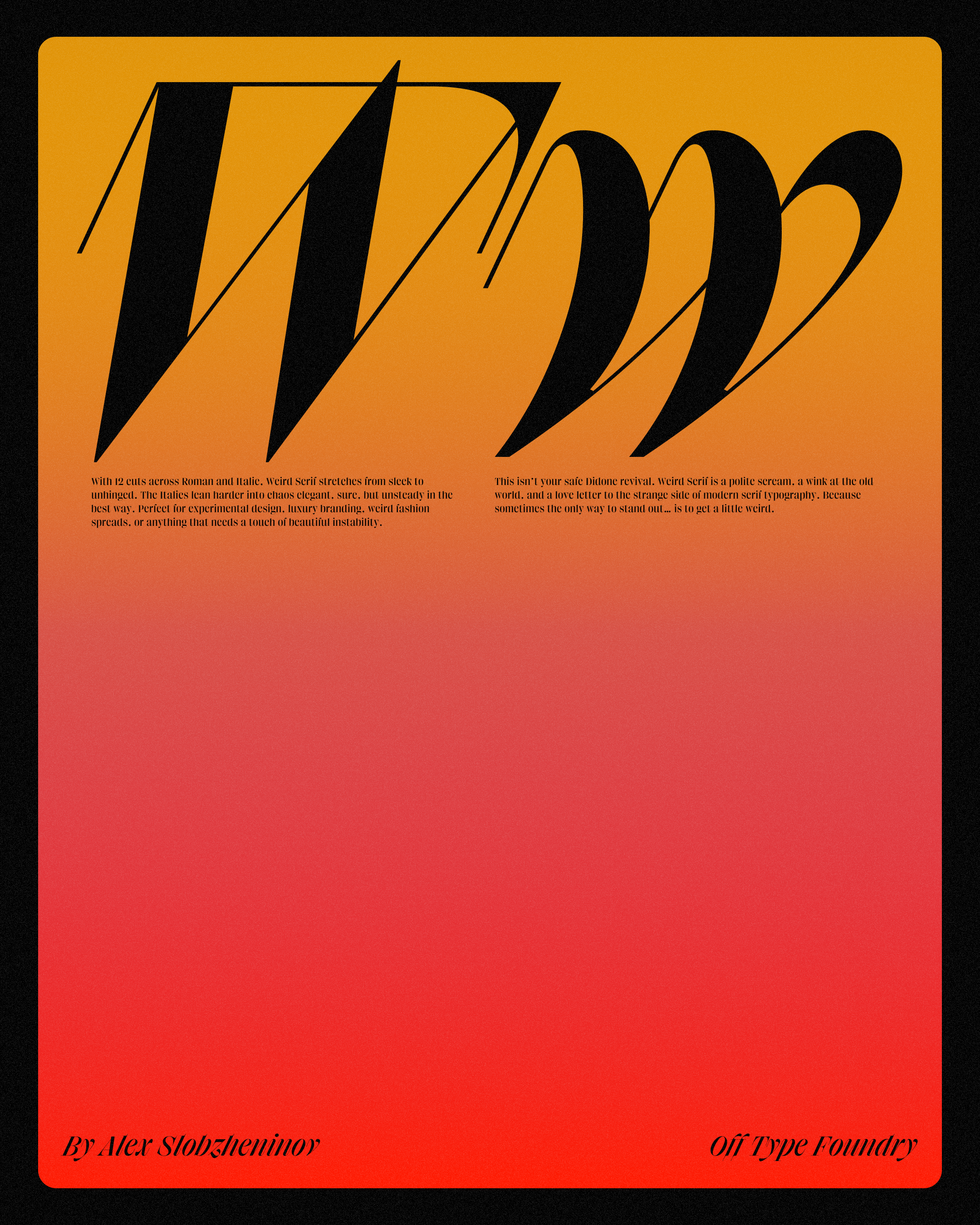 Weird Serif takes the pristine, over-polished Didone typeface and throws it into a blender.